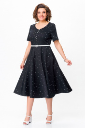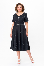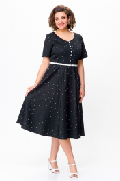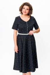 Черное хлопковое платье в стиле casual с ремнем Swallow 719.1 черный/белый_горох