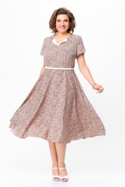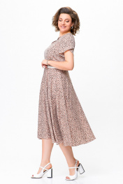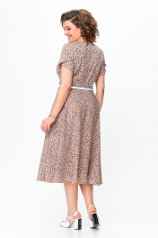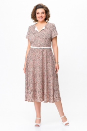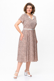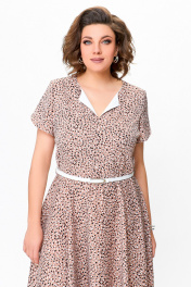 Платье из струящейся ткани с ремнем и принтом Swallow 742 беж+принт"камни"