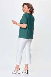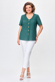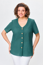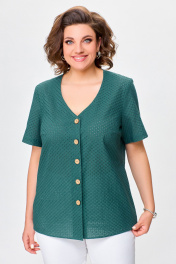 Блуза хлопчатобумажная с V-образным вырезом и нагрудными выточками Swallow 743 изумруд