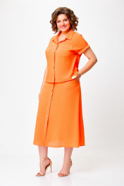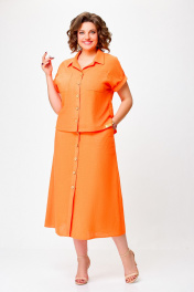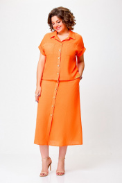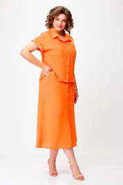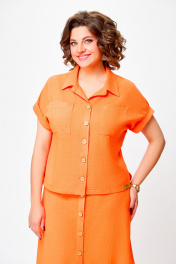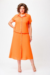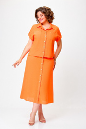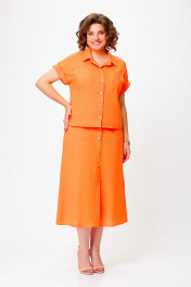 Льняной костюм из блузки и юбки с накладными карманами Swallow 750 оранжевый