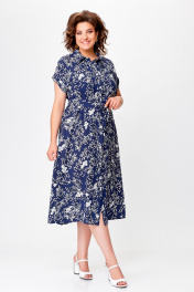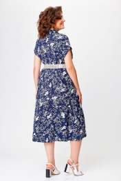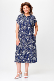 Летнее платье-рубашка свободного кроя с карманами Swallow 755 синий+«белые_веточки»