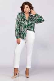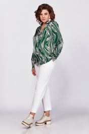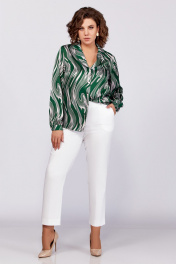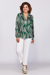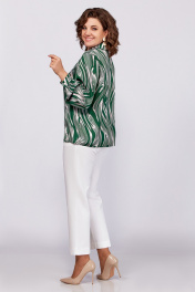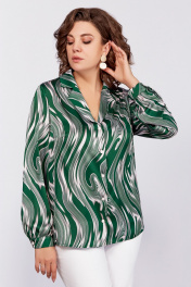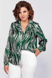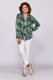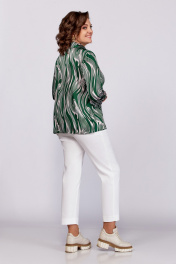 Зеленая блуза из вискозы с воротником пиджачного типа и сборками Swallow 783 зеленый/бежевые_разводы