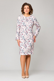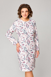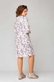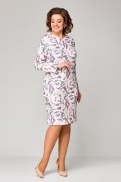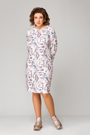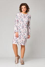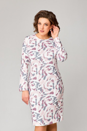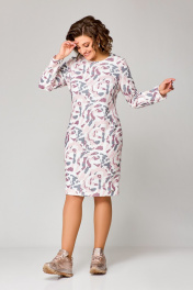 Платье полуприлегающее до колена из трикотажа с нагрудными вытачками Swallow 786.1 молочный/розово-серый_принт