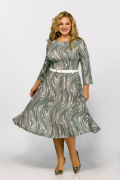 Платье из вискозы с талиевыми выточками, юбка А-силуэта Swallow 788 шалфей,принт«светлые_разводы»
