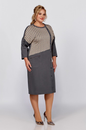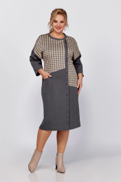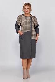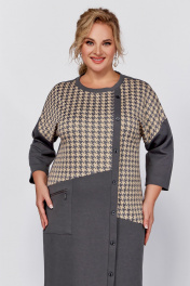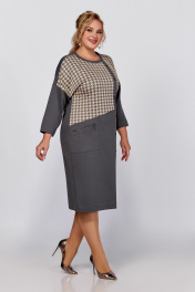 Демисезонное платье из трикотажа и хлопка с подрезами Swallow 791 светлый графит,“серо-бежевая_гусиная_лапка”