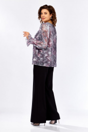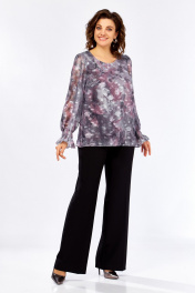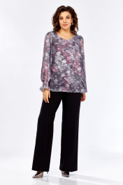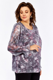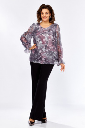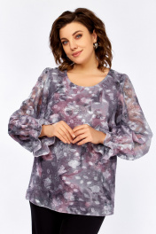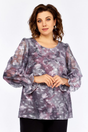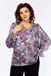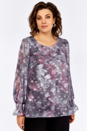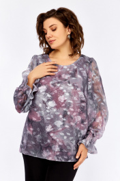 Блузка А-силуэта из нежной шифоновой ткани с лёгким эффектом «жатки», на подкладке из шифона. Полочка с нагрудными выточками, спинка без особенностей. Горловина круглая. Рукав втачной длинный по окату со сборкой, в нижней части собран на эластичную нить, которая внизу образует рюшу высотой 6 см. Длина по спинке в р.52-56 – 64 (+/-2) см. Р.58-62 – 68 (+/-2) см. Длина рукава – 64 см.