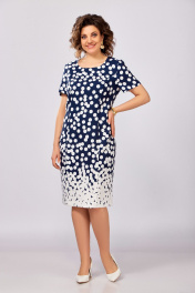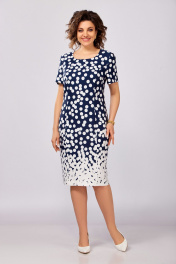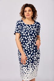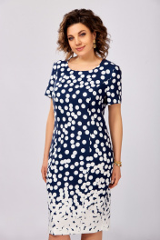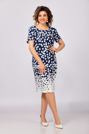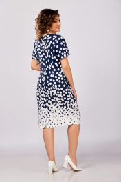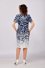 Платье полуприлегающего силуэта из мягкой поливискозной ткани с оригинальным дизайнерским принтом. По полочке выполнены рельефные швы, по спинке рельефные швы, средний шов со шлицей и застёжкой на потайную тесьму-молнию. Горловина круглая, обработана обтачкой. Рукав втачной, короткий. Длина платья по спинке – 101(+/-1) см. Длина рукава – 22(+/-1) см.