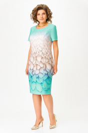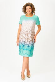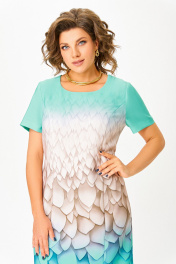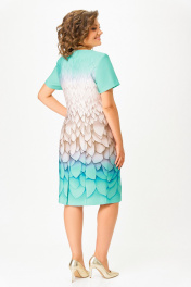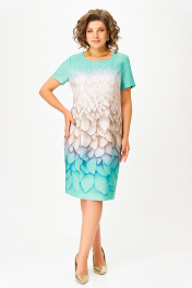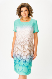 Платье полуприлегающего силуэта из мягкой поливискозной ткани с оригинальным дизайнерским принтом. По полочке выполнены рельефные швы, по спинке рельефные швы, средний шов со шлицей и застёжкой на потайную тесьму-молнию. Горловина круглая, обработана обтачкой. Рукав втачной, короткий. Длина платья по спинке – 101(+/-1) см. Длина рукава – 22(+/-1) см.