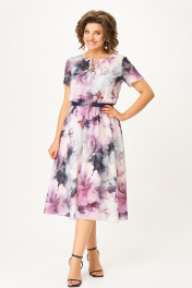 Платье Swallow 861.1 дымчато-лиловый/цветы