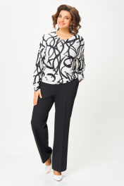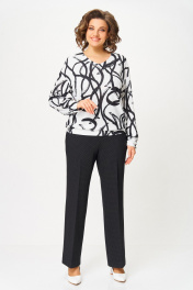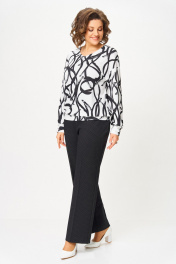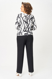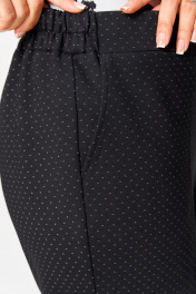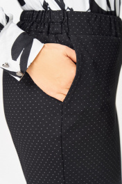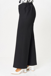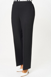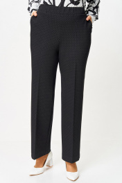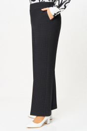 Брюки женские из эластичного трикотажного полотна, прямого от бедра кроя. По передним половинкам брюк расположены фигурные карманы. По передним и задним половинкам заутюжнены канты. Пояс брюк притачной, с эластичной тесьмой-резинкой. Длина брюк по боковому шву с поясом: в размерах 50-54 – 104(+/-1 см.) в размерах 56-60 – 105(+/-1 см.) Рост модели на фото – 170 см.