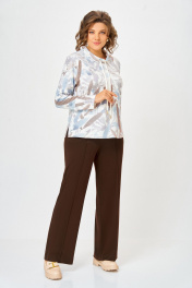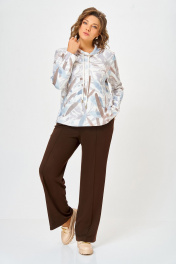 Джемпер из мягкого вискозного трикотажного полотна прямого силуэта, слегка расширен к низу. Перед и спинка цельные, в боковых швах разрезы длиной 11 см. Форма горловины круглая, обработана воротником-стойкой с люверсами, через которые втянут декоративный шнур с металлическими наконечниками. Рукав втачной одношовный длинный. Длина изделия по спинке в р. 50,52,54 – 58.5(+/-1) см. Р. 56,58,60 – 62(+/-1) см. Длина рукава - 60 см.