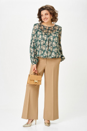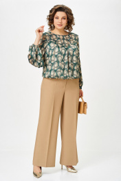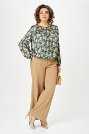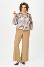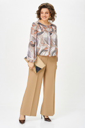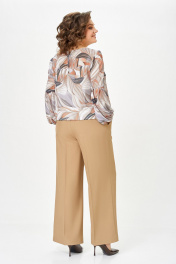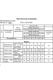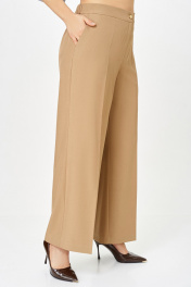 Брюки прямого силуэта. Передние и задние половины брюк с стрелками от среза притачивания пояса до низа. На передних половинах брюк карманы наклонные к боковому шву. По задним половинкам талиевые вытачки. Верх брюк обработан притачным поясом с эластичной тесьмой-резинкой по спинке. Застёжка по переду на тесьму-молнию и петлю, пуговицу на поясе. Длина брюк по боковому шву, без учёта ширины пояса – 105 (+/- 1) см.
