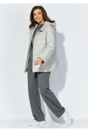 Куртка женская, прямого силуэта с длинным рукавом. Рукав со спущенной линией плеча. Длина рукава может регулироваться отложной цельнокроеной манжетой. Горловина оформлена капюшоном со стойкой. Застежка цельнокроеная на "молнию" Ниже линии талии по переду и спинке горизонтальный подрез. Спереди в подрезе карманы. Вход в карман оформлен потайной "молнией" Отрезная деталь спинки акцентирована вышивкой.