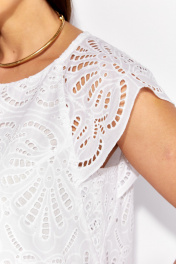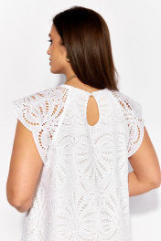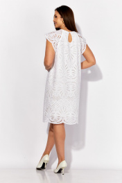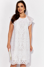 Платье женское, А-силуэта, покроя реглан, без рукава. Плечо прикрыто удлиненным крылышком. Вырез горловины круглой формы. По спинке застежка на навесную петлю и пуговицу и вырез "капля" Перед и спинка на подкладке.