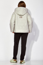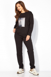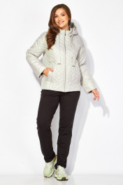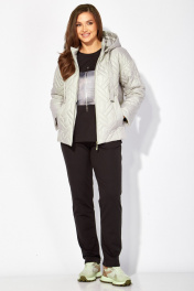 Комплект женский трехпредметный, состоящий из куртки, свитшота и брюк. Куртка женская, прямого силуэта с длинным рукавом. Рукав со спущенной линией плеча и широкой манжетой по низу. Горловина оформлена стойкой и капюшоном с кулисой. Застежка центральная на "молнию" Спереди карманы "листочки" По низу отрезная деталь в виде пояса. Спинка задекорирована отделочной нашивкой.Свитшот прямого силуэта с длинным рукавом. Рукав со спущенной линией плеча, снизу на манжете. По переду и спинке смещенные рельефы. Перед задекорирован выразительным принтом. Вырез горловины круглой формы с подрезной бейкой. Брюки длинные, прямые. По бокам наклонные карманы. Пояс притачной с резинкой по кругу.