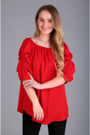 Молодежная блуза свободного силуэта. Рукав втачной, «реглан», длиной 36 см, по шву притачивания манжет собирается сборка. У горловины изделие собирается по кругу на резинку. Благодаря конструкции - рукав имеет пышную форму придавая блузке романтический вид.