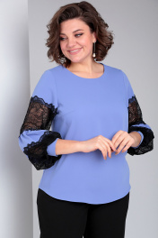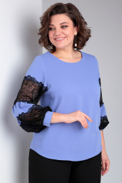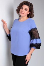 Романтическая блузка с кружевными рукавами и свободным силуэтом Таир-Гранд 62370 лаванда