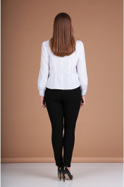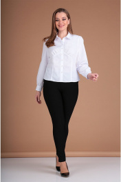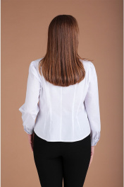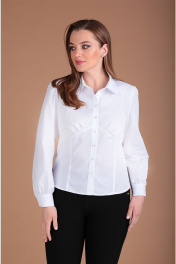 Деловая стильная блуза приталенного силуэта с центральной застежкой по полочке. Воротник втачной на стойке рубашечный. Рукав по окату присборен и отстрочен припуск по полочке и спинке. На спинке имеются талевые вытачки по две с каждой стороны. На полочках фигурные рельефы, с идущими лучевыми складками к линии груди. Деловая стильная блуза должна быть в гардеробе каждой женщины. Этот базовый предмет одежды уместен в условиях офиса к тому же, к такой вещи совершенно несложно подобрать пиджак, юбку или брюки.