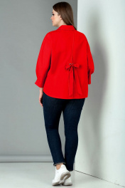 Модная блуза-рубашка, свободного силуэта. Выполнена из хлопкового полотна. Застежка центральная. Воротник рубашечный, на стойке. Рукав цельнокраёный, длиной ¾ покроя «летучая мышь». По низу рукава в виде манжета закреплены обтачкой декоративные четыре складки. Спинка состоит из двух частей: в районе горловины, заходят друг за друга на 12см. Чуть выше талии выполнены декоративные люверсы, через которые продет бант, выполненный из основной ткани. Спинка чуть длиннее полочки. Нижние, свободные концы спинки, расходятся в виде разреза. М 62427 48 50 52 54 56 58 Длинна спинки, (см) 67 67 69 69 70 70 Ширина под проймой, (см) ПОГ 58 60 62 64 66 68 Ширина по бедрам, (см) ПОБ 59 61 63 65 67 69 Длина полочки (центр) см 57 57 60 60 61 61 Длина рукава (от стойки), (см) 60,5 60,5 61,5 61,5 62 62 Ширина рукава (см) под проймой (обхват) 54 54 56 56 58 58 Ширина манжет (обхват), см 26 26 27,2 27,2 28,5 28,5