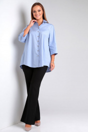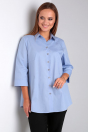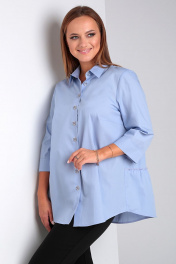 Классическая свободная блуза на пуговицах с ярусами Таир-Гранд 62429 голубой