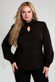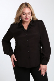 Блуза повседневная прямой силуэт с присборенными рукавами Таир-Гранд 62439 черный