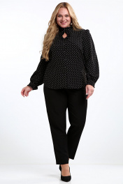 Блуза офисная прямая с вытачками и перьями Таир-Гранд 62439 горох