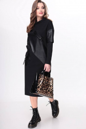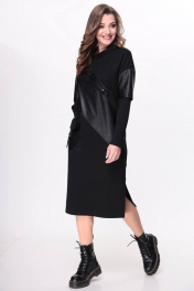 Платье из трикотажа и эко-кожи с карманами Taita plus 2136