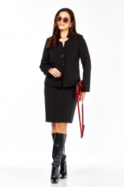 Красивый , элегантный женский комплект , состоит из жакета и юбки . Жакет очень интересного дизайна , с воротничком стойка , с интересным вырезом спереди , на двух пуговицах. Жакет полностью на подкладке , с длинным рукавом. Длина жакета по спинке от плеча -57,5 см , длина рукава- 61,5 см. Юбка слегка заужена книзу ,спереди шлица, пояс по бакам на резинке , сбоку юбки функциональные карманы. Длина юбки -60 см Ткань костюмно- плательная 96 пэ 4 спандекс. Рост модели 173 см