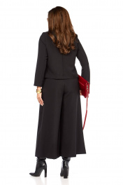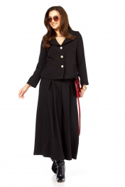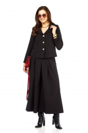 Стильный ,элегантный , интересный . женский комплект. состоит из юбки- брюк ( кюлоты0 и жакета . жакет с интересным дизайном воротника , накладными карманами оригинального дизайна. рукав длина — 58 см. Длина жакета от плеча по спинке 56 см. Кюлоты очень хорошей посадки с функциональными карманами по бокам , с тремя встречными складками спереди , сзади пояс на резинке , по поясу есть шлеки ,что позволяет носить юбку-брюки с любым верхом ,можно добавить ремень. длина юбки 93 см.