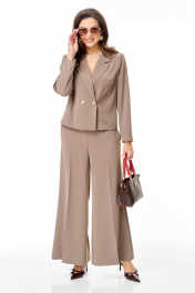 Стильный , оригинальный ,красивый ,удобный ,женский комплект ,подходит как для торжественного случая ,так и для повседневной носки. Жакет двубортный , рукав длинный , длина рукава — 60 см , длина по спинке от плеча — 58 см. Брюки стильные , с расширением от бедер , пояс сзади на резинке , по бокам функциональные карманы.. Длина брюк -104 см. Состав ткани 96 пэ 4 спандекс. Рост модели 173 см