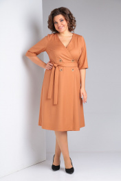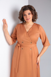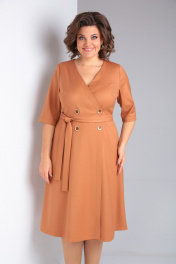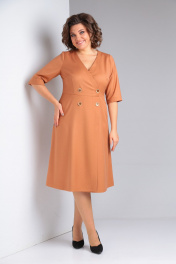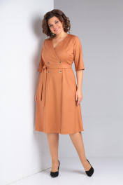 Оранжевое платье с талиевыми вытачками и запахом Takka Plus 23-204