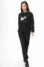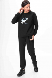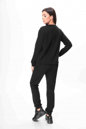 Костюм женский спортивного стиля, состоящий из свитшота и брюк. Выполнен из трикотажного полотна футер-трехнитка.Мягкий и приятный к телу костюм, прекрасно держит тепло и согревает, хорошо пропускает воздух. Свитшот свободного кроя. По переду - полочка украшена декоративным элементом. Рукав одношовный, спущенный, по низу рукава притачная манжета.Спинка прямая, цельная. По низу свитшота приточная манжета.Горловина округлой формы с планкой из отделочной ткани (кашкорсе). Брюки прямые. Пояс притачной, на резинке.По передним половинкам карманы, снизу притачная манжета. Модель актуальна круглый год. Длина изделия свитшота по спинке –60 см ,рукав (длинна с манжетой) –60 см от проймы, манжета -4,5см. Брюки длинна по боковому шву -103 см. (На фото модель 44р. Рост -168см.)