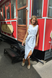 Изящный сарафан из натурального белорусского льна.На кнопках,с поясом.Сарафан не замачивается,а стирается на режиме Деликатная стирка с минимальным отжимом.Изделия с кнопками не замачиваются.