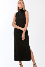 Платье трикотажное без рукавов с высокой горловиной из плотного мягкого эластичного материала. Лаконичный дизайн, приятная плотная ткань, минималистичный стиль, трендовое сочетание высокой горловины и открытых рук – отличительные черты платья-водолазки ANN. Высокая свободная горловина закрывает шею, ее не нужно подворачивать, только слегка опустить, чтобы она легла мягкой естественной складкой. Американская пройма платья красиво открывает линию плеч, смотрится очень стильно и трендово. Полуприталенный силуэт подчеркивает изгибы фигуры, но не обтягивает их. Платье выполнено в длине maxi, с разрезом сбоку. Отлично смотрится в сочетании с кардиганом, жакетом/пиджаком, пальто или тренчем. Чтобы подчеркнуть талию, можно дополнить образ ремнем. Платье-водолазка - стильная базовая вещь вне времени, с помощью которой можно составить красивые и удобные образы для города и офиса в прохладный сезон с осени до весны. Ткань мягкая, теплая, плотная и приятная к телу. Благодаря плотности в 350 гр/м2 ткань не просвечивает и через нее не выделяется белье. В составе ткани 68% вискозы (это природный материал растительного происхождения, получаемый из целлюлозы дерева), что позволяет ткани дышать, в ней уютно и в теплую и в холодную погоду. Упакован в полупрозрачный ZIP пакет. Носите с удовольствием! Назначение изделия: деловой, на каждый день Форма/силуэт: полуприлегающий силуэт. Вид застёжки: без застежки. Характеристика конструкции переда: перед без выточек. Характеристика конструкции спинки: спинка без выточек. Особенности модели: без рукавов, с разрезом сбоку . Воротник: высокая горловина. Длина: макси .