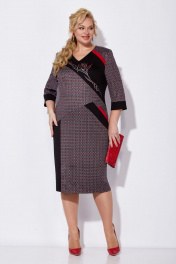 Оригинальное, модное платье выполнено из эластичного трикотажного полотна с актуальным дизайном и отделкой из однотона. Силуэт полуприлегающий. V-образный вырез горловины подчеркнет линию шеи. Правильно смоделированные подрезы- вставки из черного однотона, позволяют визуально скорректировать недостатки фигуры. По левой стороне выполнен карман оформленный входом листочкой. Рукав двух шовный, длиной ¾ , по низу с притачной манжетой. Особенность изделия – устойчивая к внешним факторам термопечать с авторским дизайном, декорированная пришивными камнями. Этот декор идеально вписывается в концепцию изделия и придает ему неповторимости и шарма. Спинка со средним швом и талиевыми выточками. По низу среднего шва расположена шлица. Изделие прекрасно подойдет, как для повседневной носки, так и для торжественных мероприятий. Легко обыгрывается и дополняется аксессуарами, что делает платье Вашей универсальной находкой на любой случай. Длина платья ок. 106 см Длина рукава ок. 47 см