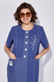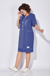 Стильное женское платье полуприлегающего силуэта в стиле «спорт-шик». Платье выполнено из льняной ткани в двух расцветках, полоска и однотон. Горловина круглая. Рукава втачные одношовные короткие. По переду обработана горизонтальная кокетка и диагональный подрез. Перед ассиметричен, справа, в области бедра выполнен функциональный накладной карман, слева карман оформлен листочкой. В качестве отделки добавлены декоративные нашивки. Правильно подобранная обувь завершит образ и придаст ему стильность. К данному платью подойдут как классические туфли, так и спортивная обувь. Изделие прекрасно дополнит гардероб любой модницы. Длина платья ок. 104 см Длина рукава ок. 27 см