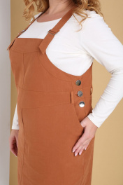 Стильный сарафан из стрейчевого джинса. Благодаря своей универсальности будет актуален не один сезон. Комплектовать сарафан можно как с лёгким верхом (футболки, блузки), так и с более тёплым (фуфайки, свитера, водолазки). Длина бретелей регулируется. На переде изделия обработаны кокетки, вертикальный шов с треугольной вставкой по низу, имитация гульфика и внутренние карманы. Спинка с кокетками, средним швом и разрезом. Застёжка парная, в боковых швах, на три петли и пуговицы. Отделкой изделия служит металлическая фурнитура (может отличаться от представленной на фото). Белая фуфайка на фото в комплект не входит. Длина спинки без учёта бретелей: в 48-52 р-рах — 86см.; в 54-58 р-рах — 89см.; в 60-64 р-рах — 92см. Минимальная длина бретелей (в застёгнутом виде): 33см.