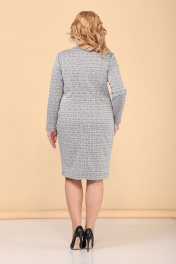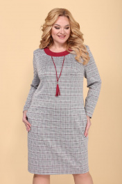 Стильное тёплое платье прямого силуэта из плотного трикотажного полотна в клетку(джерси) и искусственной замши. Перед с бочками, нагрудными вытачками, в швах притачивания бочков обработаны функциональные внутренние карманы. Горловина обработана планкой, в шов притачивания которой вставлено украшение - замшевая "кисточка". Спинка со средним швом, талиевыми вытачками. Рукав втачной одношовный. Длина от центра горловины спинки до низа: для р-ров 54,56,58 - 102-102,5 см., для 60,62 р-ров - 105 см. Длина рукава: 61 см.
