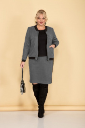 Комплект из эко-замши: бомбер, юбка и футболка Tensi 347а жемчужно-серый