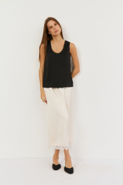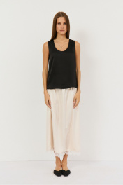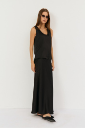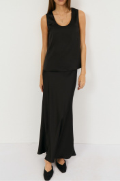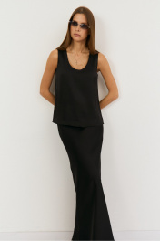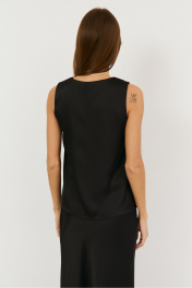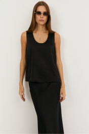 Базовый топ прямого кроя без рукава на обтачке по переду и спинке .Длина по спинке 58 см , по груди в 42-м размере 44 см. Выполнен из атласной ткани , подойдет как база под жакет, рубашку, для повседневного или офисного стиля.
