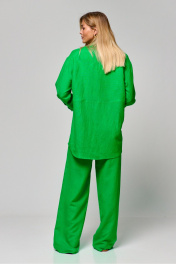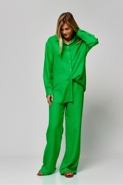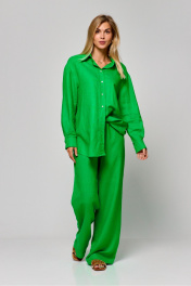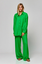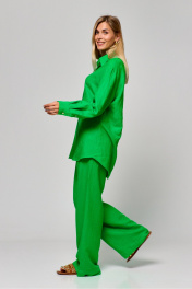 Комплект двухпредметный из рубашки и брюк.Летняя одежда изо льна легко струится по телу, не прилипает, благодаря природным свойствам льняная ткань обладает естественной пропускной способностью, позволяя воздуху свободно проходить между волокнами.Рубашка свободного кроя, воротник-стойка, по переду отстроченная планка с застежкой на петли-пуговицы . Рубашку можно накинуть поверх топа, либо носить самостоятельно. Длина рукава от линии шва – 57 см Ширина плеч – 51 см Длина изделия – 81 см.Прямые брюки изо льна ярко- зеленого цвета придадут вашему образу яркий акцент , талия высокая, брюки на резинке , длина по боковому шву 110 см.Рекомендуется ручная стирка или стирка на низких оборотах стиральной машины.