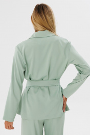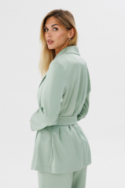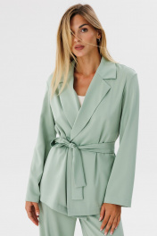 Легкий жакет из атласа оливкового цвета дополнит ваш повседневный образ.Жакет прямого кроя на запах под пояс, без пуговиц, без покладки , спинка без среднего шва. Отделочные строчки по борту воротника и поясу на 0,7 мм. Его можно сочетать с брюками, юбками, можно одевать поверх платья или сарафана, миксуя с различной обувью и доавляя аксессуары.