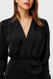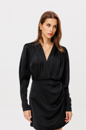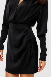Платье на запах из атласа с драпировками и длиной 84 см THE NAME 2356 черный