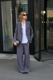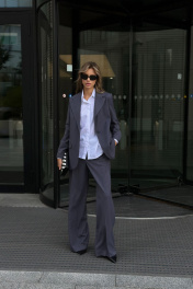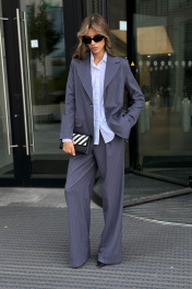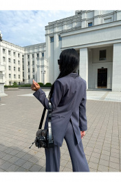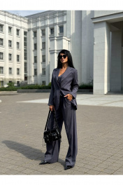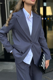 Жакет оверсайз в полоску, со шлицей сзади Рост модели 168 см. Длина 76 см, рукав 61 см