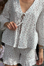 Костюм с шортами В комплект входит рубашка на завязках и шорты на резинке Длина рубашки - 51см ,обхват груди 110,длина рукава 40 см Шорты -длина 39 см,обхват бёдер 86 см ,талия (58 см- 76 см)