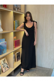 Платье-сарафан прямого кроя в макси длине, с акцентными завязками на плече регулирующие длинну платья. Рост модели 176 см. Длина-125 см, обхват груди-78 см,обхват талии-86 см, обхват бедер-106 см.