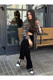 Брюки из вельветовой ткани, прямого кроя. Рост модели 168 см. Длина-114 см, обхват талии-72 см, обхват бедер-94 см.