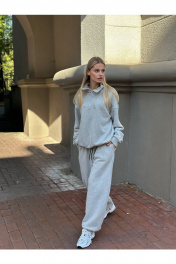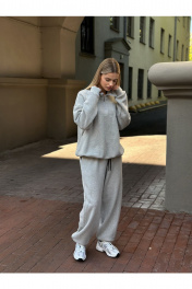 Зип-худи оверсайз, на резинке с низу, спущенная линия плеча. Рост модели 168 см. Длина -75 см, рукав-54 см, обхват груди-128см, обхват талии-126 см. Брюки-джогеры с карманами, на поясе резинка. Длина-102 см, обхват талии-64 см, обхват бедер-106 см.
