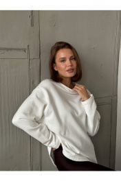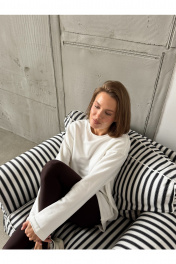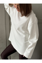 Лонгслив прямого кроя. Рост модели 168 см. Длина-70 см, рукав-53 см, обхват груди-122 см, обхват талии-122 см.