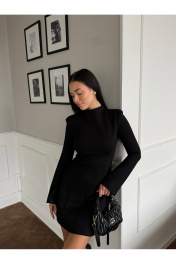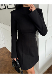 Платье из плотного трикотажа, приталенного кроя. Рост модели 168 см. Длина-90 см, рукав-66 см, обхват груди-80 см, обхват талии-70 см, обхват бедер-90 см.
